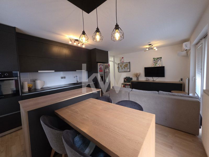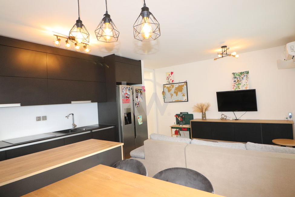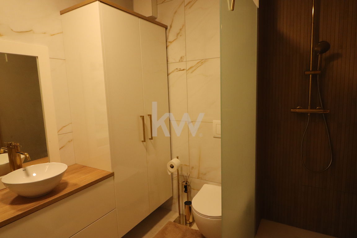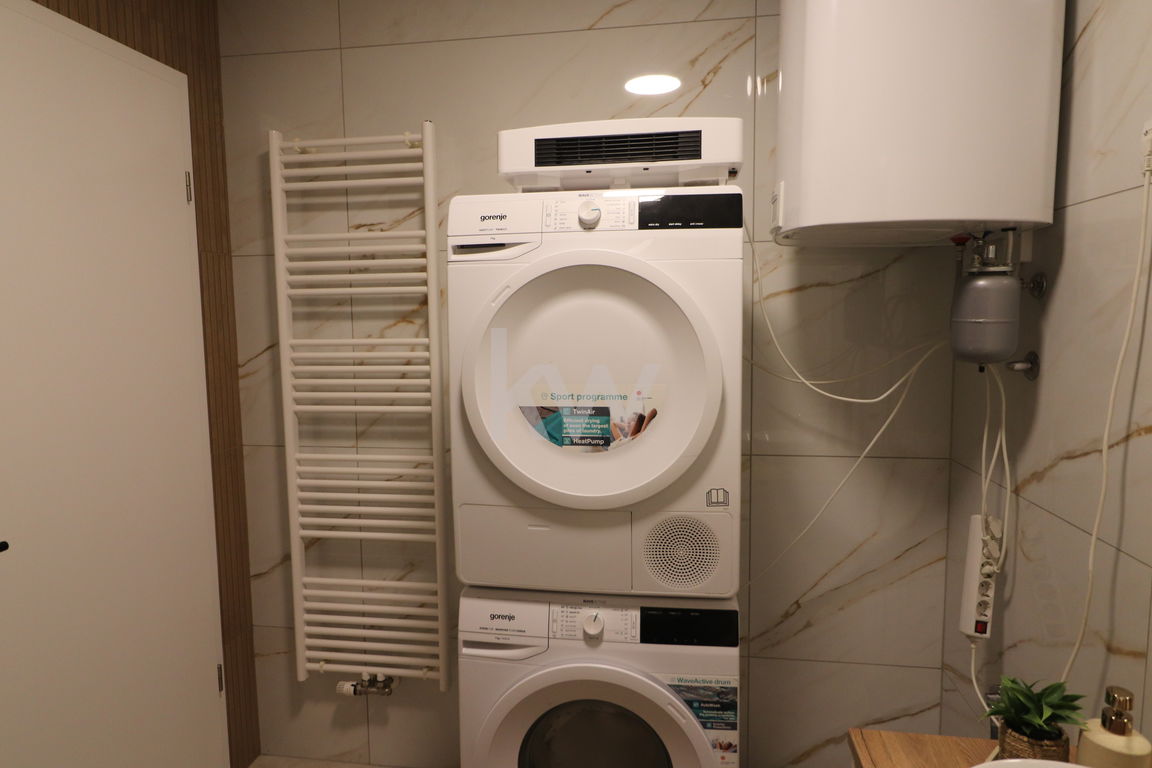 Opremljeno je s kuhinjo z aparati, pomivalnim strojem, kopalno kadjo, posteljo ter pisalno mizo, kar omogoča takojšnjo uporabo brez dodatnih vlaganj.