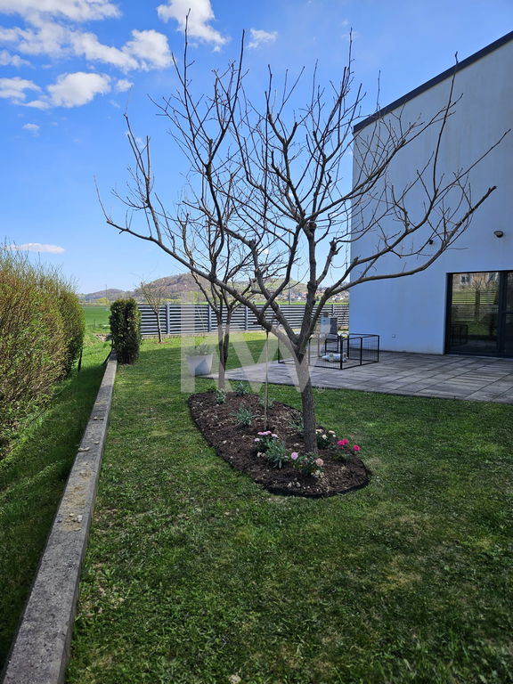 Na mirni in ravni parceli velikosti 709 m² se prodaja sodobno zasnovana, svetla in izredno funkcionalna hiša, zgrajena leta 2015 in vseljena leta 2016. Hiša ponuja 205,4 m² bruto površine, premišljeno razporejene po dveh etažah, ter je idealna za družine ali vse, ki si želijo kakovostnega in udobnega bivanja.
