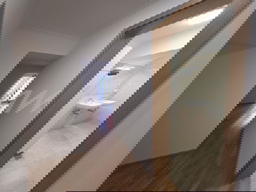 Udobno in svetlo 4 sobno stanovanje z balkonom se nahaja v pritličju vile in nudi pogled na staro mestno jedro. Vključuje hodnik, utiliy, predsobo, kopalnico 1 z banjo, wc, bide in dvema umivalnikoma, kuhinjo z dnevno-bivalnim prostorom, kabinet in spalnico z lastno kopalnico, v kateri je tuš kabina, wc in umivalnik. Stavbno pohištvo je izdelano po meri, okna so lesena, 3 slojni termopan z notranjimi senčili na el. pogon, tla so hrastov parket in kvalitetna keramika. Vhodna vrata so protipožarna in protivlomna. Stanovanje ima pripravljeno inštalacijo za klimatsko napravo, vgrajen je prezračevalni sistem i-Vent in domofon. Pripada mu tudi lastniška garaža, eno lastniško nepokrito parkirno mesto ter shramba.