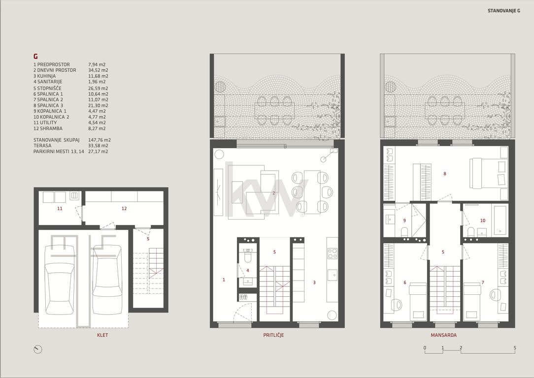 atrij (33,58 m²) – zasebna zunanja oaza za sprostitev.