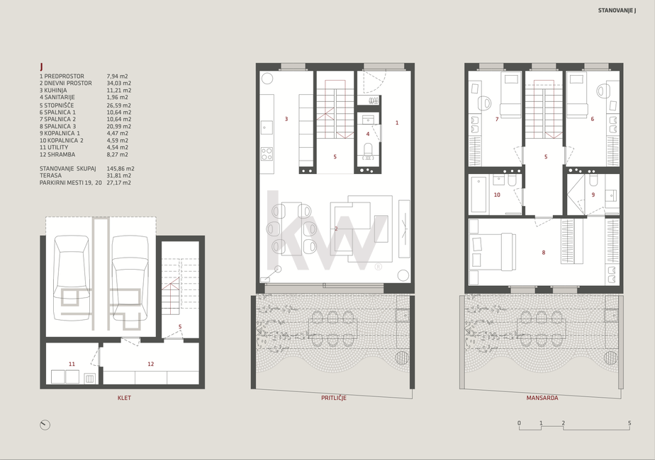 atrij (31,81 m²) – zasebna zunanja oaza za sprostitev.