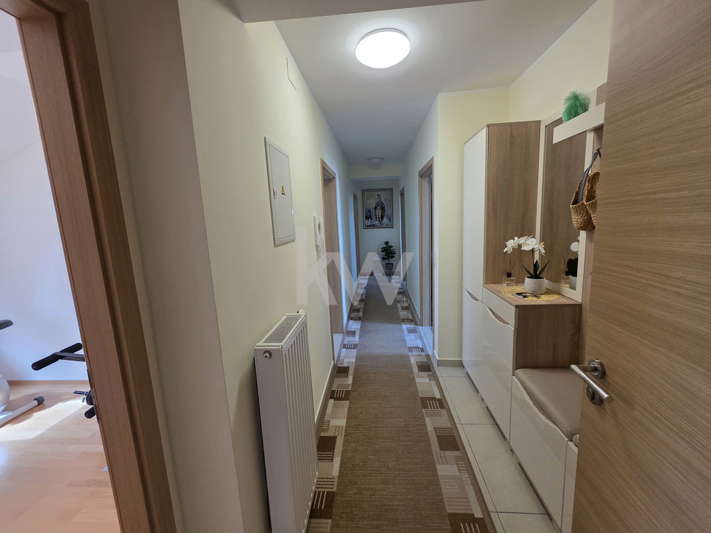 Stanovanje obsega: vhodni prostor, popolnoma prenovljeno kopalnico leta 2024 s tušem, straniščem in bidejem, spalnico, otroška soba1 in otroška soba 2. Osrednji del predstavlja kuhinja z jedilnico, ki je povezana z dnevnim prostorom, ki je klimatiziran, od koder je izhod na pokriti balkon, primeren za sprostitev in uživanje v mirnem okolju. Dodatno sta na voljo še shramba in funkcionalna razporeditev, ki omogoča udobno vsakodnevno bivanje.