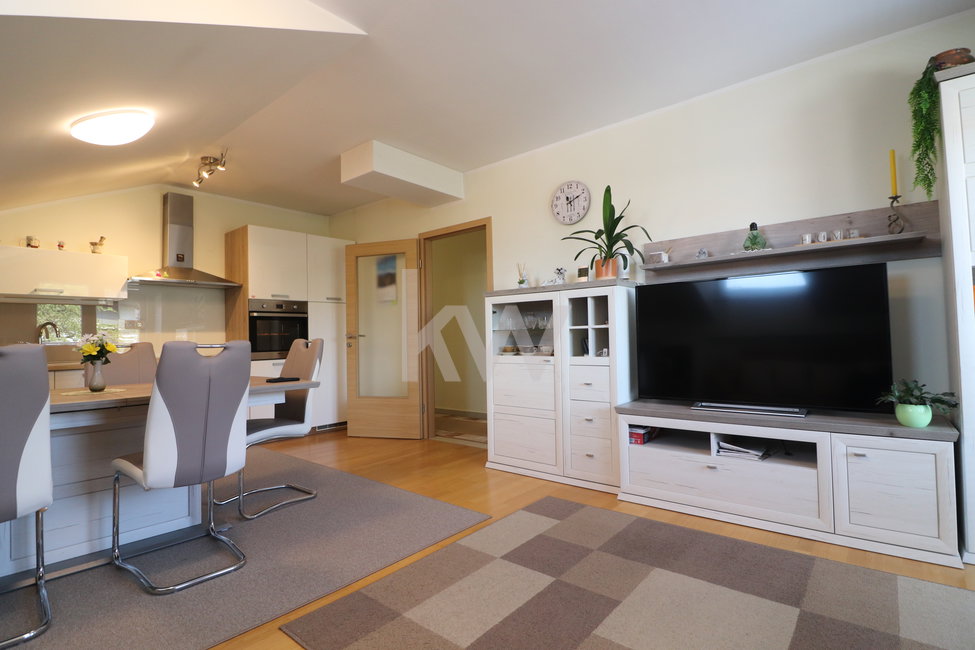Lokacija nepremičnine ponuja popolno ravnovesje med mirom in udobjem vsakdanjega življenja. Stanovanje je umeščeno v izjemno prijetno, sončno in umirjeno sosesko, obdano z naravo, kjer prevladuje občutek zasebnosti in sproščenosti. Zahodna, južna in jugozahodna orientacija zagotavljajo obilico naravne svetlobe skozi ves dan, kar prostoru daje toplino in občutek odprtosti.